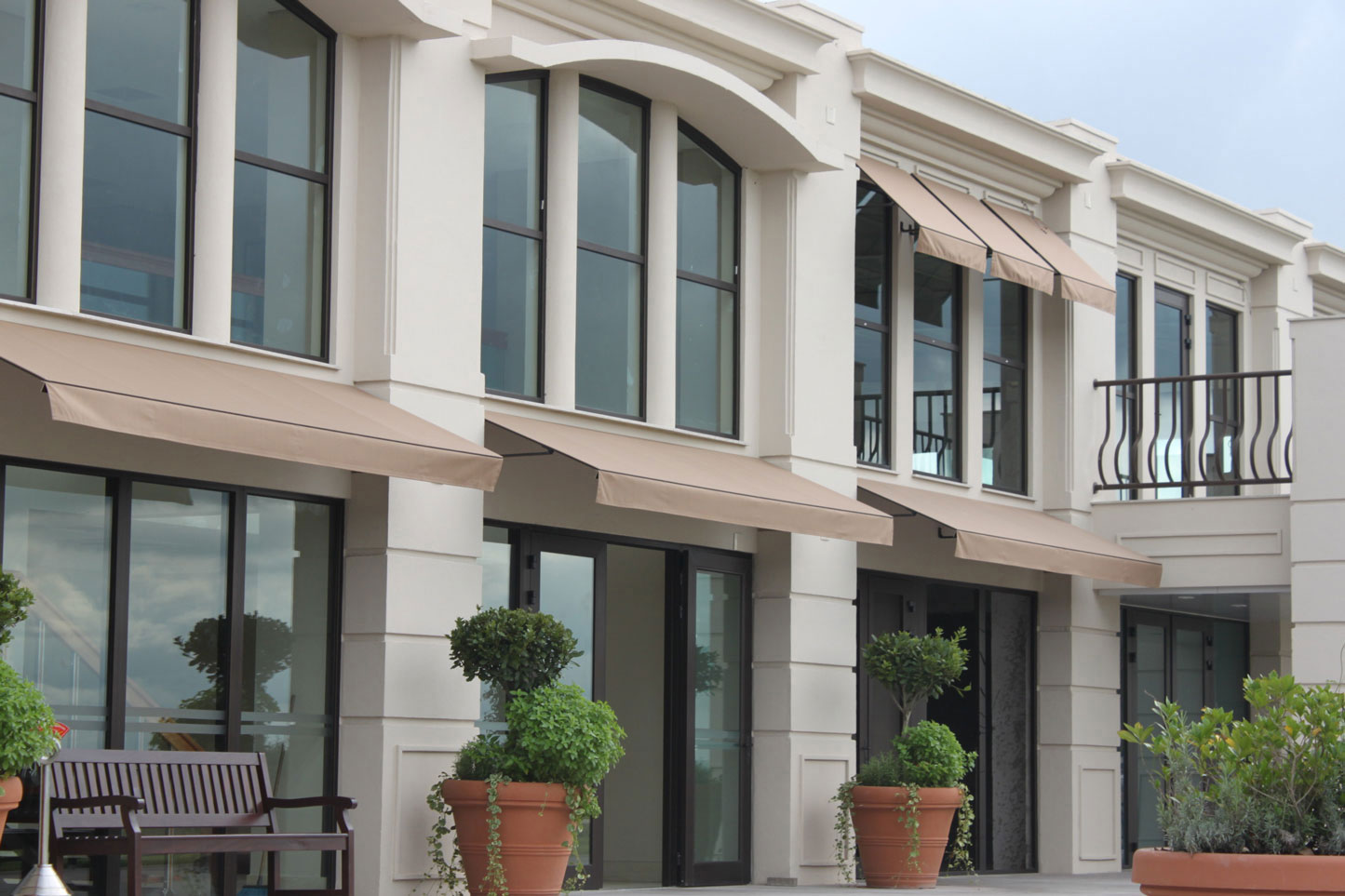 Composto por um painel com braços sempre fixos, o Classic-plus atende grandes dimensões, cobrindo áreas de até 6m de largura. O sistema de encaixe do tecido o mantém sempre tensionado nos perfis.